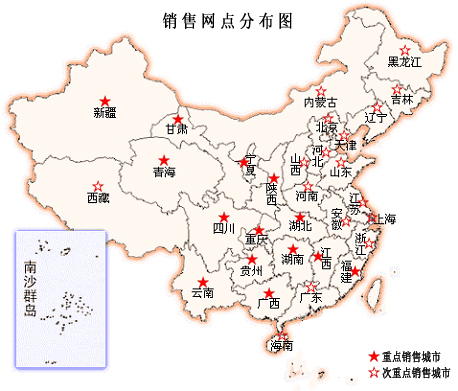 重慶、四川、貴州、云南、甘肅、新疆、陜西、青海、寧夏、湖北、湖南、江西、廣東、廣西、浙江、福建、山東、內蒙古、安徽、河南、河北、山西等省、直轄市。